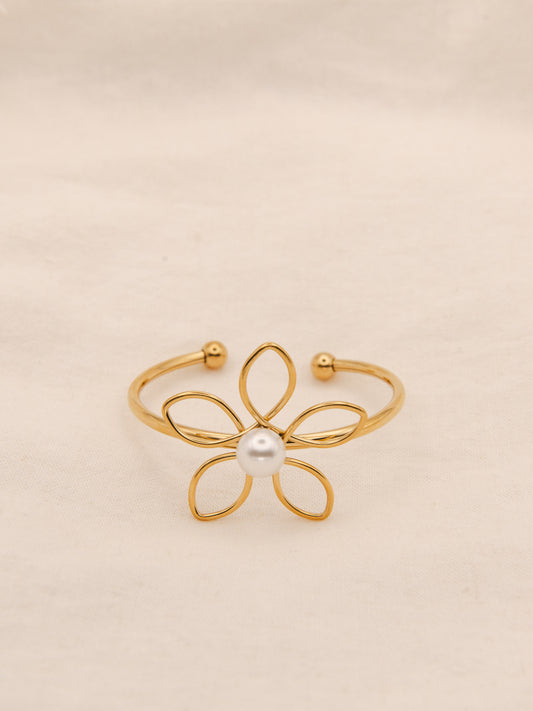 Hollow Pearl Flower Bangle Bracelet